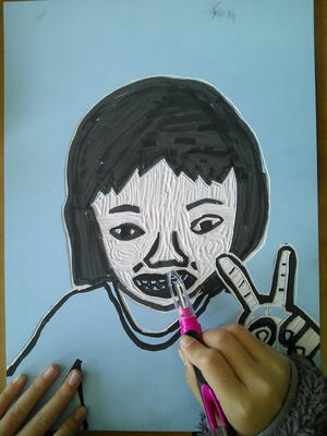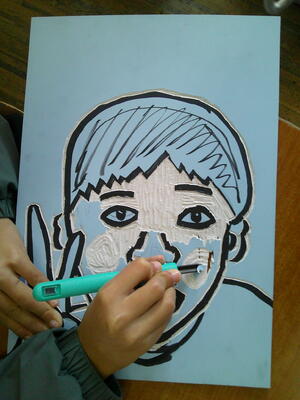 4年生が図工で版画に挑戦していました。