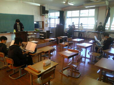 6年生が、音楽で「僕らまた」の合奏の練習をしていました。