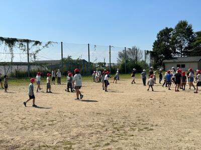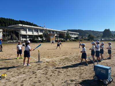 本日も、上学年児童が、自分がキャッチしたボールを下学年児童にあげて、下級生に投げさせるという場面を何回か見ることができました。