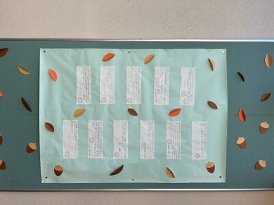 3年生の掲示板は、国語の単元「秋のくらし」のまとめの掲示でした。
