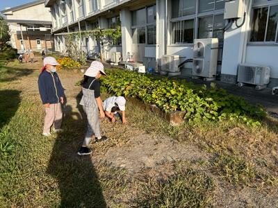 1枚目の写真は、さつまいもに水をやり終えた2年生。その2年生と話をしましたが、話が最終的に落ち着いたのは、「さつまいもを育てるのは、3つの楽しみがある」ということです。①育てることが楽しい、②いもほりが楽しい、③おいもを料理するのが楽しい。の3つです。その中でも、③番が一番楽しいのだそうです。