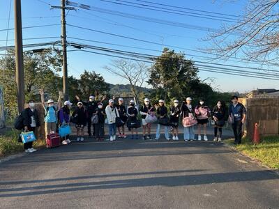 *下の写真は、昨日の朝、校舎に向かって元気なあいさつをして、修学旅行に出発しようとしている6年生です。