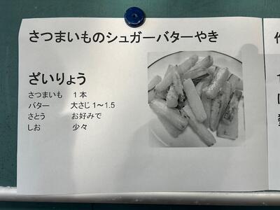 とっても、じょうずに「さつまいもシュガーバターやき」が完成しました。みんなで、おいしくいただきました。