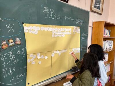図書委員会が、企画「雪玉をふやそう」ゲーム(12月7日まで)を展開しています。