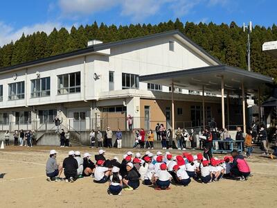 12月8日の運動場には、多くの子供たちがいました。多くの先生方も、子供たちと一緒でした。