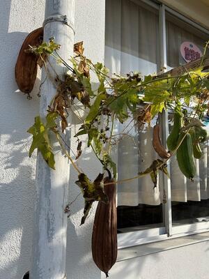 そのような理由で、枯れたヘチマが、今も理科園に残してあります。