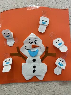 教室に、折り紙が飾ってありました。子供たちが休み時間につくったそうです。