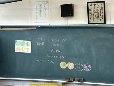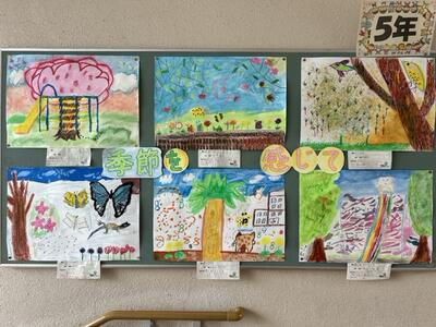 4月23日、5年生が図工の授業をしていました。「季節を感じて」という絵を描く学習です。