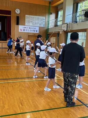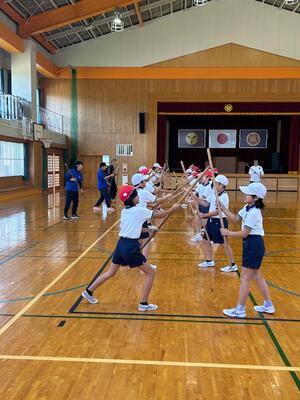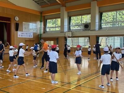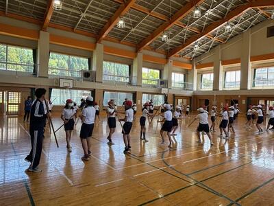 梶山棒踊り保存会の皆様6名が、熱心に指導にあたってくださいました。保存会の皆様、本当にありがとうございました。