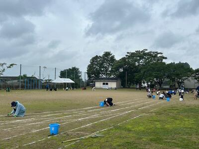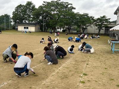 その後、少しの時間でしたが、運動場の草取りもしました。学校全体の草はだいぶ整備されています。運動場内の草は若干残っている状態ですので、なるべく綺麗な状態で本番を迎えたいと思っているところです。