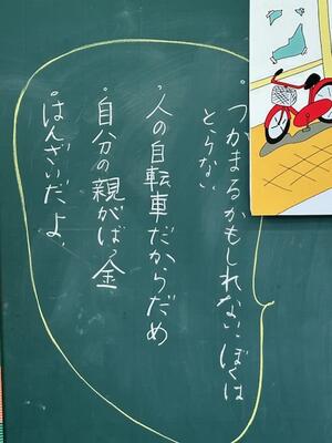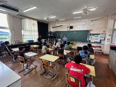 3年生は万引き補導された児童の例(チョコレート)、4年生は窃盗補導された児童の例(自転車)、5年生は薬物乱用問題、6年生は現代のSNSの問題を各学年の授業のテーマとして、都城警察署生活安全課の方々が、講師をしてくださいました。