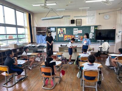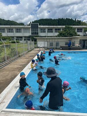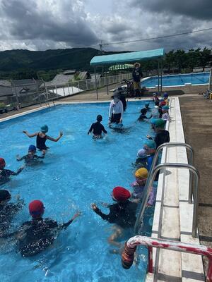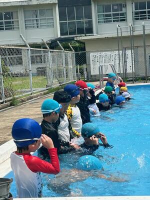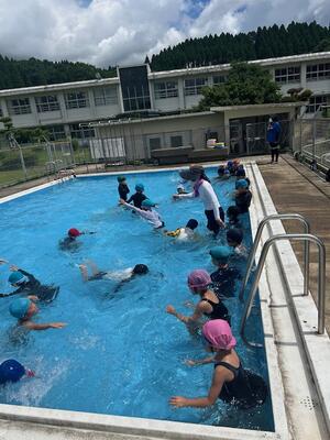 7月19日(金)に、1.2年生が、今年度最後の水泳学習を楽しんでいました。1.2年生は、水泳学習の流れもきちんと把握しており、指導者が、「次は〇〇をします」と指示を出すだけで、しっかりと学習に取り組めるようになっていました。