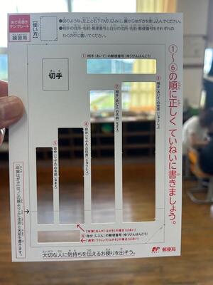 学習のめあては「ていねいな字でハガキを書こう」でしたが、子供たち全員がていねいな字でハガキを書いていました。