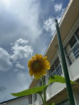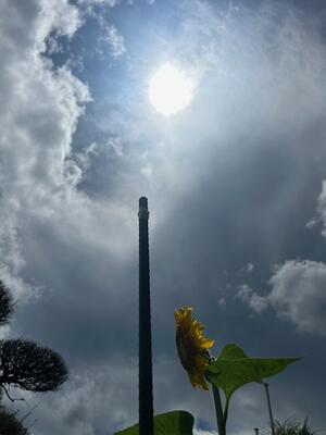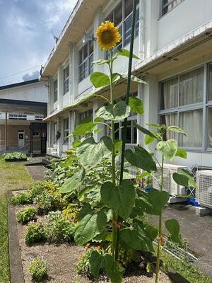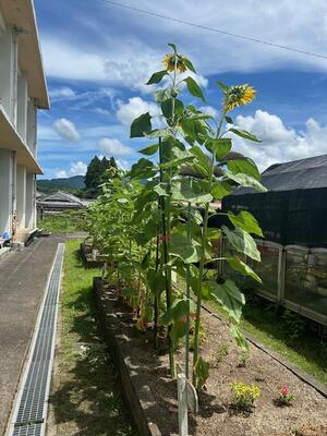 先程、ヒマワリが目に入りました。見上げるくらい高く高く成長しています。