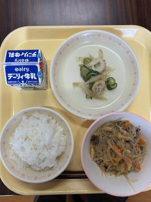 本日の給食は、牛乳、ごはん、マーボーはるさめ、ごぼうサラダでした。今ほど、お昼の放送で、「昔ごぼうは食べる習慣がなかった。野菜ではなく木と認識されていた」という紹介がされました。