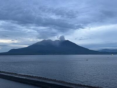 ・朝は予定通り文化会館を出発し、桜島の有村溶岩展望所に行きました。そして、桜島フェリーで鹿児島市内に渡りました。