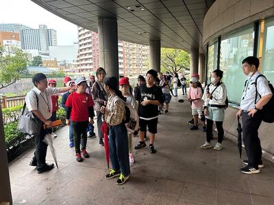 ・午後です。小雨の中の班別自主研修は、博物館、西郷隆盛像、メルヘン館、黎明館をまわりました。活動班は3校で編成していますが、みんな仲良くできていました。