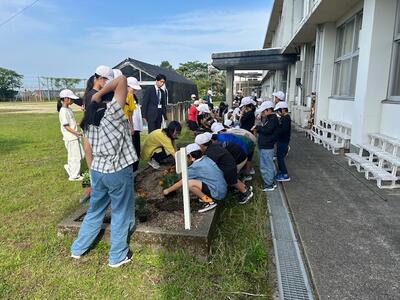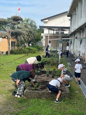 5月28日の朝の活動で、花の苗の移植をしました。