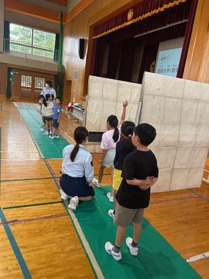 当初の計画は、運動場実施でしたが、天候不良により、体育館で実施することになりました。