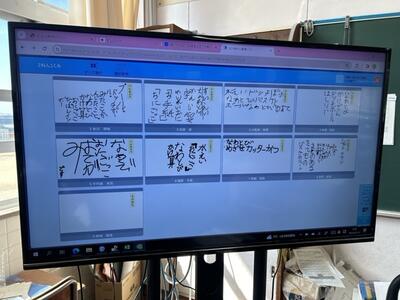 本日の授業では、2年生が、国語「楽しかったよ、二年生」において、各自が2年生で楽しかったことを、タブレットに記載していました。学級担任は、全員の情報を吸い上げ、学級全員で情報共有しながらの授業を展開していました。