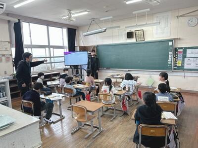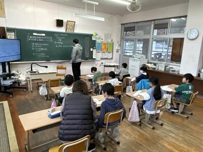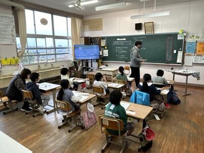 1月31日、3年生教室では、外国語活動の授業がされていました、マーティン先生と学級担任が、しっかりTT(チームティーチング)を組んで、役割分担をしながら授業を展開していました。
