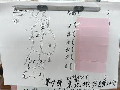 教室入口の掲示の第7弾は、「東北地方を覚えよう!」です。