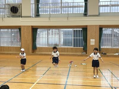 昨年なわとびを始めたときは、前跳びもできていなかった児童が、最近は、前跳び・後跳び、交差飛びまでできるようになっています。全体的にも、色々な跳び方ができるようになっています。