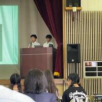 8月26日は、2学期の始業式でした。始業式の前に、2学期から新しく宮村小の1年生のクラスに仲間入りする友達の紹介がありました。始業式では、4年生と5年生の代表児童が、全校児童の前で学習・生活面において2学期にがんばりたいことを発表しました。
