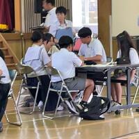 5月31日(金)に、風水害を想定した避難訓練を行いました。まず、すべての荷物を持ち、体育館に集合しました。体育館では登校班ごとに整列し、担当の職員からの安全な集団下校の仕方と帰宅後の過ごし方についての話を聞き、その後、集団下校を行いました。