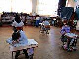 今日の朝の時間は、MIM(読みの力をアップする)でした。問題に取り組み、一人一人にあわせ、読みの指導に生かしていきます。写真は、問題に懸命に取り組んでいる様子です。次の写真は、1年生の図画工作の時間です。