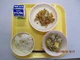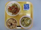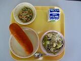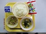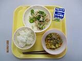 本日の給食は、ごはん、牛乳、あつあげの中華煮、はるさめのすのもの、でした。