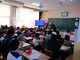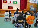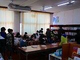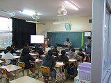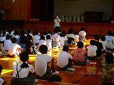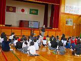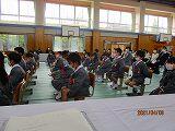 本日は火曜日、朝の時間は、清掃でした。清掃終了後は、反省会をします。(本校の清掃は異学年交流でやっています)