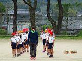 本日は3のつく日で、「みまたの日」今年度から、当番制でなく、あいさつリレーを行っています。あいさつの声も大きくなっています。また、5月23日に運動会を実施する本校では、本日の朝の時間に結団式をしました。色の決定も、選んだペットボトルの水をふると色が「白」「赤」になるという工夫されたものでした。
