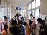本日も昨日に続き、晴天に恵まれ、外は暑いくらいでした。本年度は、135名のスタートですが、やはり、ピーク時には、児童玄関も若干こみあいます。写真は、朝の児童玄関の様子、1年生の心電図検査にむかう様子(とってもおりこうさんです)3年生の理科の観察の様子、昼休みに運動場で子ども達と遊ぶALTの様子です。