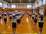 また、1校時は、昨日に続き、全校体育で開会式、ラジオ体操の練習を中心に体育館で行いました。
