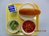 本日の、給食は、ミルクパン、牛乳、チリコンカン、キャベツとツナのサラダ、でした。