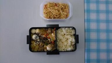 マーボーはるさめ(豚ひき肉、だいず、はるさめ、砂糖、ゴマ油、たまねぎ、たけのこ、きくらげ、ねぎ)