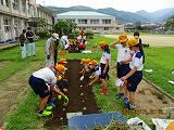 本日5年生が校外学習で昨年度実施予定だった、EM菌を学校の花壇と高畑川にまきに行きました。高畑川がきれいになることを願い、子ども達は投げこんでいました。