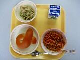今週、特に頑張ることは、「進んで 元気よく 笑顔で」あいさつ です。月曜なのでどうかなと思いましたが、予想に反して(ごめんなさい)大きな声であいさつできた子が多かったです。明日も頑張ってくれると思います。本日の給食は
