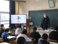 今日は、朝から寒い一日となりましたが、体育館では、1・2年生が元気に走ったり、縄跳びをしたりしていました。また、教室では、5・6年生が、大型テレビで国語の教科書の文を読んだり、算数の表を確認したりしながら授業を行っていました。