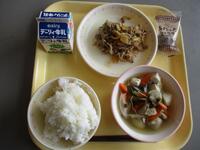 今日の給食は、牛乳、ごはん、かぶと肉団子のスープ、豚肉と厚揚げのオイスターソースでした。