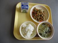 今日の給食は、牛乳、ごはん、やまと煮、和風和えでした。