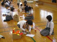 今日は、1・2年生合同の生活科が体育館でありました。2年生が、生活科で作った動くおもちゃを1年生に紹介し、1年生は、2年生がつくったおもちゃで遊びました。1年生は、楽しそうに動くおもちゃで遊んでいて、2年生は、楽しそうに遊ぶ1年生を見ながら満足そうにしていました。