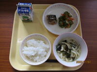 5年生は、宿泊学習があったので、今日は通常の授業です。給食は、牛乳、ごはん、さけなめし、かぼちゃの煮つけ、和風和えでした。