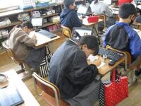 今日は、午後から町の秋季研修会が行われるので、特別校時の4時間授業です。家庭科室では、5年生が、パッチワークを縫うことを通して、ミシンの使い方を学んでいました。また、6年生は、国語の学習で、日本の文化のよさをパンフレットにまとめる学習を行っていました。