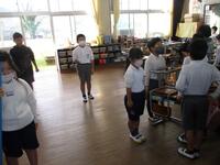 今日も、朝から子どもたちが校門に並んで、元気にあいさつをして登校してきています。午前中、体育館では、2年生が、生活科で作った動くおもちゃを1年生に紹介する為に、練習をしていました。