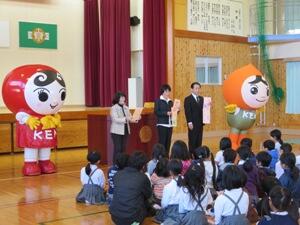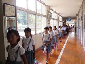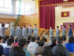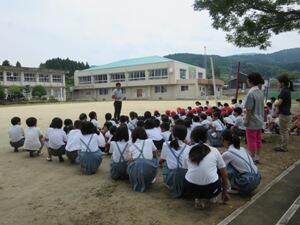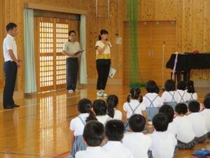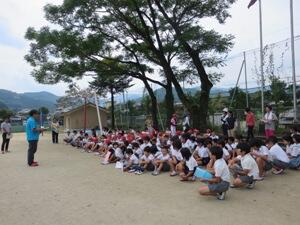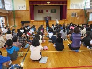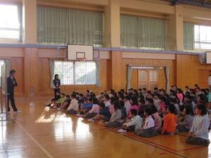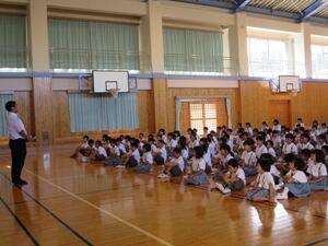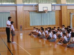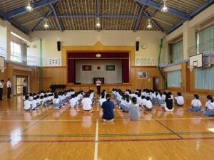 放送委員会が取り組んでいるアナウンスのための3つの早口言葉にも挑戦してもらいました。1・2年生が「生麦生米生卵」3・4年生が「となりの客はよく柿食う客だ」5・6年生が「バナナの謎はまだ謎なのだぞ」でした。