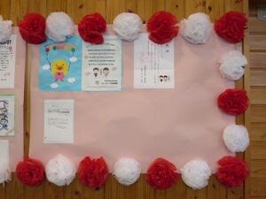 1年生のがんばったところ、良かったところを上級生がたくさん見つけて発表しました。えらいですね。