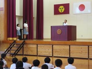 また、三股町親と子のふれあい標語、「思いやりの心」に関する標語、三股町読書感想文・感想画コンクール、長距離走大会各学年第1位、多読賞、宮崎県文集ともだち、西日本読書感想画などの表彰やバドミントン九州大会第2位の紹介がありました。それぞれ得意なこと、がんばったことで認められて、良かったです。おめでとうございます。