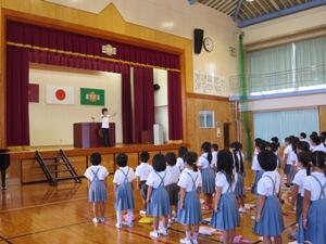 式典中、1年生の態度は大変素晴らしく、礼の仕方、立ち姿等立派でした。これから6年間の小学校生活における成長が大変楽しみです。